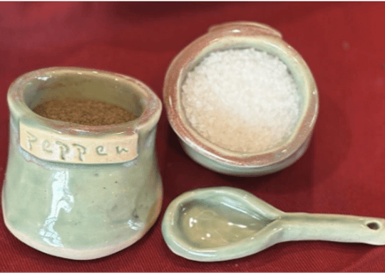 Pottery by Hand - Household and Kitchen Item Series: Salt & Pepper Pig / Pinch Pot with Spoon & Spoon Rest